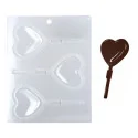 Moule chocolat PVC pour réaliser trois sucettes en forme de cœur.