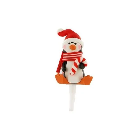 Ce joli décor de Noël en résine sur pique, représentant un pingouin de Noël, donnera du charme et un air traditionnel à tous vos desserts de Noël.