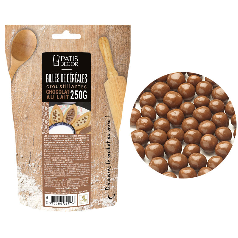 Ces délicieuses billes de céréales enrobées de chocolat au lait sont idéales pour décorer les cupcakes, les gâteaux, les glaces, etc. mais vous pouvez également les incorporer dans les cakes, les cookies...