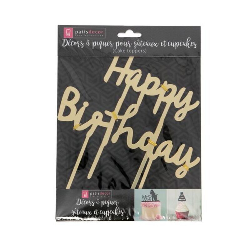 Décorez vos gâteaux d'anniversaire avec ce joli cake topper doré Happy Birthday à planter dans vos gâteaux.
