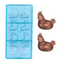 Moule à chocolat muni de 8 empreintes, permettant de réaliser une poule 4 poule 3D assises (taille 5 cm).
