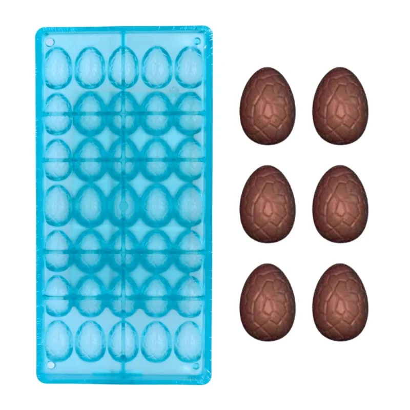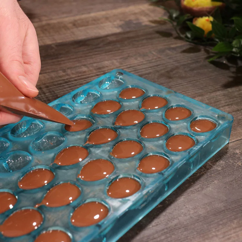 Moule à chocolat muni de 25 empreintes permettant de réaliser des demi-œufs de Pâques craquelés à assembler, taille 3 cm.