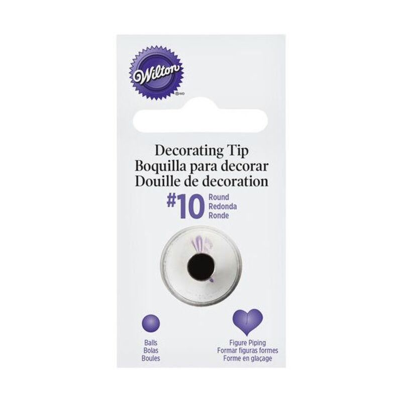 Cette douille unie n°10 Wilton est parfaite pour réaliser des inscriptions, des points, des lignes, des lettres, des perles, des cordes et des dentelles sur vos gâteaux et pâtisseries.