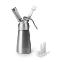 Siphon culinaire idéal pour préparer différentes créations à base de crème, ainsi que de délicieux desserts et de délicieuses sauces chaudes ou froides. Pour les sauces chaudes, la température ne doit pas dépasser les 50°C.