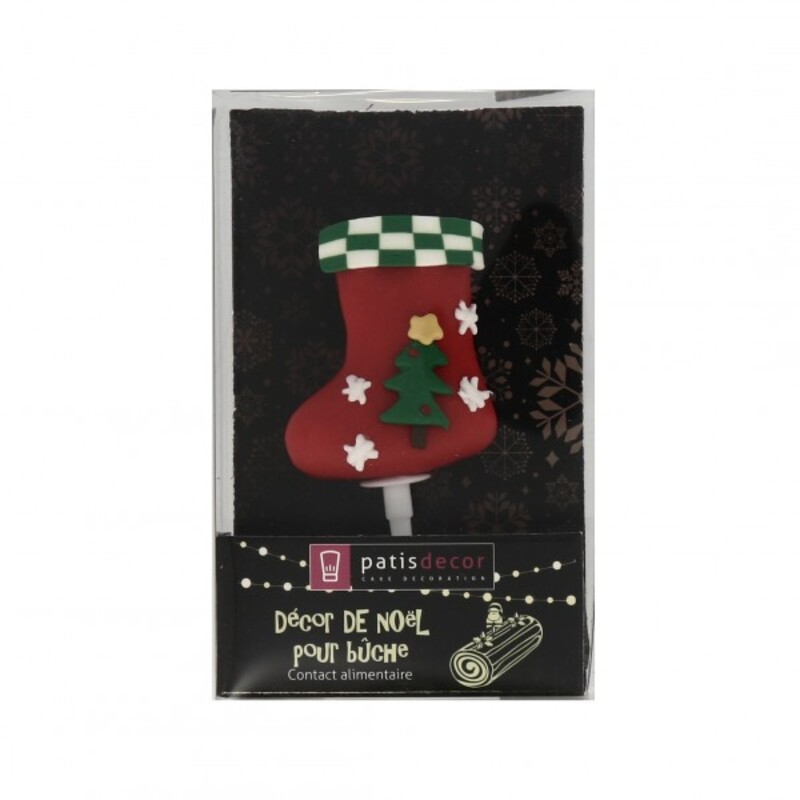 Chaussette de Noël décorée sur pique, non comestible, pour le décor des bûches de Noël et gâteaux de Nouvel An.