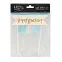 Décorez vos gâteaux d'anniversaire avec ce joli cake topper doré, blanc et bleu Happy Birthday. Il ajoutera une touche classe à tous vos desserts