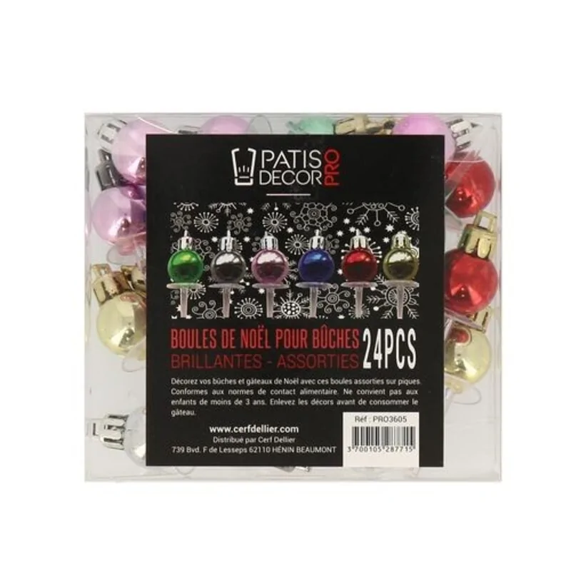 Décors boule de Noël couleur brillantes assortis (x24)