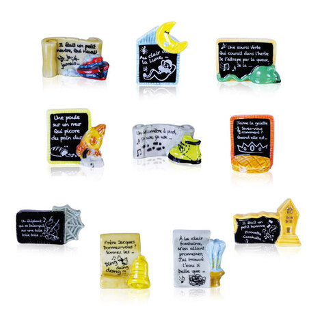 Lot de 100 fèves Comptines de mon enfance assorties en porcelaine seront parfaites pour vos galettes des rois.