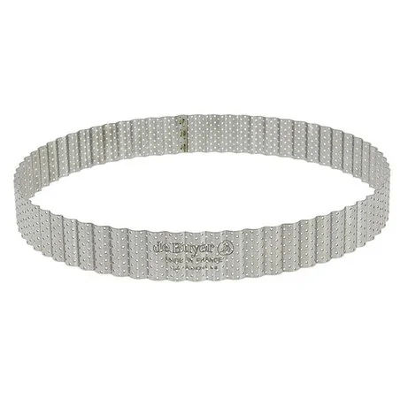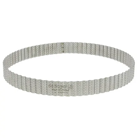 Ce cercle à tarte perforé et cannelé de Buyer est fabriqué en acier inoxydable. Il possède une hauteur de 3 cm, ce qui permet de réaliser des créations généreuses, élégantes et pleines de rondeurs.