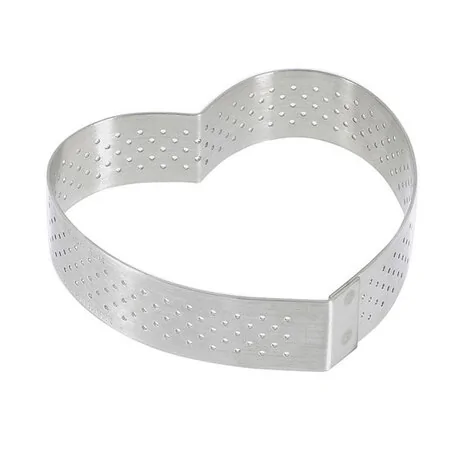 Ce cercle à tarte cœur perforé de Buyer est fabriqué en acier inoxydable. Il a été développé en partenariat avec l’École du Grand Chocolat Valrhona.