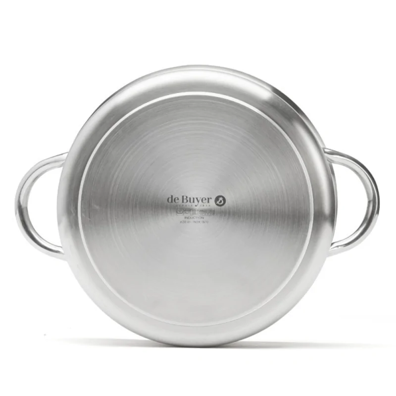 L'ustensile de cuisson est fabriqué en acier inoxydable AISI 304, avec bord verseur et fond sandwich, et permet une diffusion homogène de la chaleur sur tout le fond de l’ustensile.