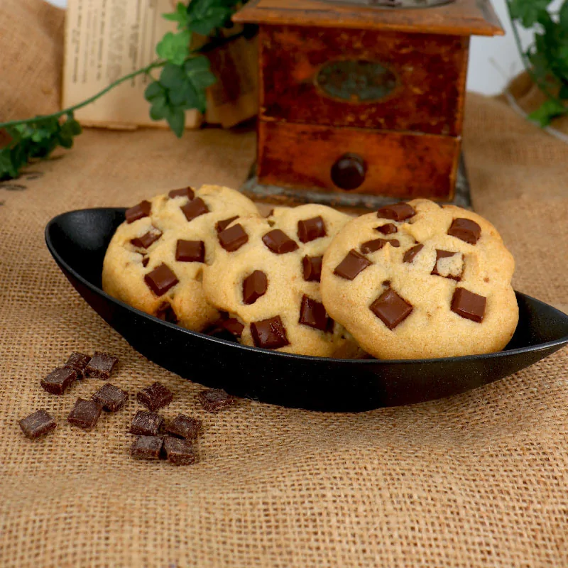 Grâce à leur faible teneur en beurre de cacao, ces maxi-chunks fondent lentement et résistent à des températures jusqu’à 200 °C, libérant progressivement tous leurs arômes et conservant un aspect rustique et artisanal, idéal pour sublimer vos créations visuellement.