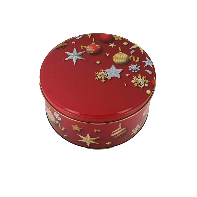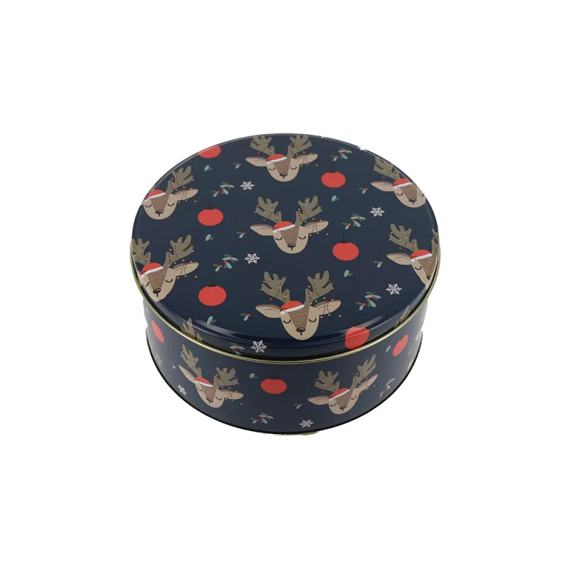 Boîte à biscuits ronde en métal, pour conserver vos biscuits de Noël.