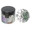 Celui-ci se compose de mini-billes assorties (noires, blanches, violettes, vertes), de perles et de bâtons argentés et de grosses billes blanches.