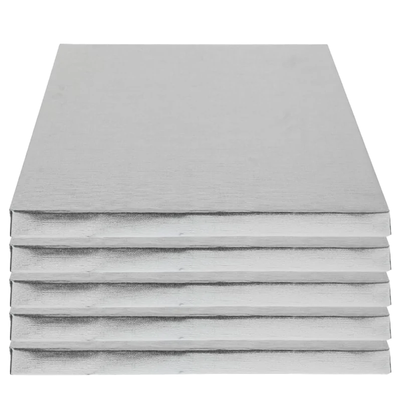 Ces 5 cake drums 20 x 20 cm sont des carrés en carton épais très résistants (épaisseur 1,2 cm) de couleur argentée, qui supporteront sans plier, ni se déformer le poids de tous vos gâteaux.