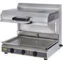 Mise en marche par détection du plat ou de l\'assiette au contact de la barre inox Arrêt instantané à l\'enlèvement du plat Chauffe instantanée : 570°C en 5 secondes Plafond vitrocéramique facile d\'entretien Plafond ajustable en hauteur en fonction du résultat souhaité Doseur d\'énergie pour maintien en température jusqu\'au grill 2 zones de chauffe indépendantes pour maîtriser cuissons et énergie Construction tout inox Plat inférieur avec grille amovible pour faciliter le nettoyage Possibilité de fonctionnement continu Surface de cuisson : 495 x 375 mm