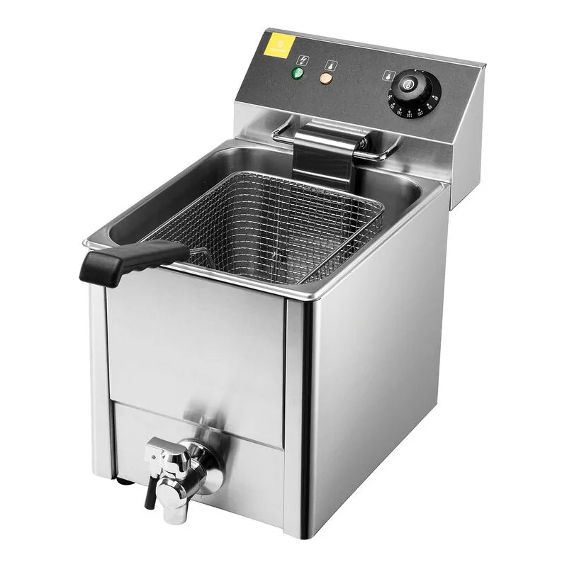 Châssis, cuve, panier et couvercle en acier inoxydable Thermostat réglable de +60°C à +190°C Protection contre la surchauffe et manque d\'huile par disjoncteur thermique Résistance et bloc commande amovible avec contact de sécurité Entretien simple et nettoyage facile Panier avec poignée soudée pour une sécurité améliorée Equipée de vidange selon normes CE en vigueur