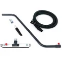 Livré avec 1 flexible antistatique L 250 cm, 1 tube métallique Ø 40 mm, 1 suceur plat à brosse,1 suceur plat et une brosse ronde pour le nettoyage du sol