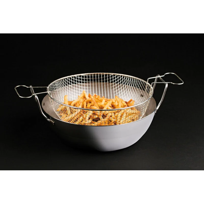 bassine à friture en tôle d'acier noire avec panier 45 cm