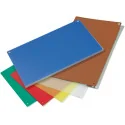 Pratique, hygiénique et compatible HACCP Système moins couteux que le changement intégral de la planche à découper ou son rabotage Plaques de découpe remplaçables et réversibles Conserve le plan de découpe plat, non soumis à l\'usure Plaque parfaitement calée sur la planche grâce aux ergots Plaque dissociable et flexible permettant de transvaser les aliments coupés dans un récipient Couleurs assorties ( Bleue/marron/transparente/jaune/rouge/verte)
