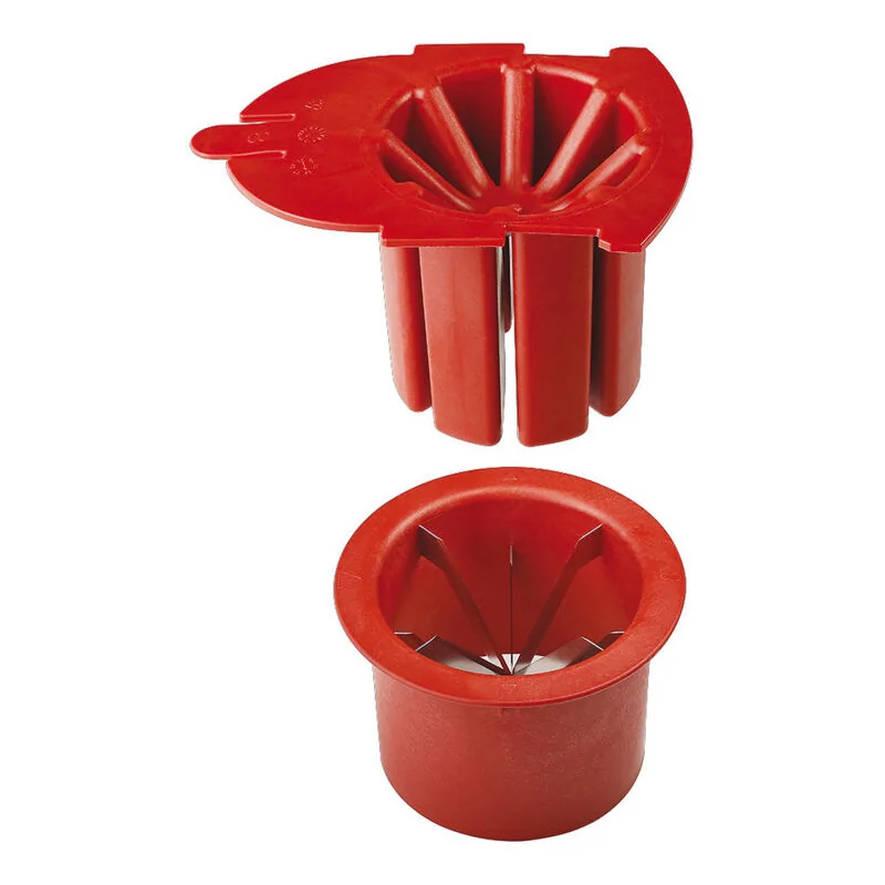 Bloc-lames et poussoir en matériau composite Bloc lames interchangeable, lames résistantes en acier inoxydale trempé Coupe nette et facile grâce aux lames bien affutées 2 tailles possibles de quartiers :6 quartiers et 8 quartiers Garantie de présentation parfaite et conservation optimale Mise en place et démontage sans outil