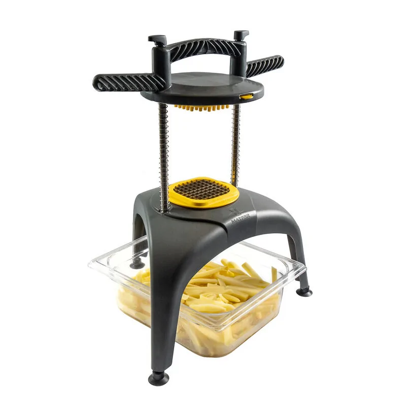 Support Prep Chef (tige et poignées) vendu sans accessoire Support léger et ergonomique pour un confort d\'utilisation rapide, sans forcer Gain de temps pour utilisation pratique et en toute sécurité Support démontable facile à ranger Coupe nette et facile grâce aux couteaux en acier trempé Rapidité d\'utilisation grâce aux ressorts de remontée du poussoir Support robuste en matériau composite et stable grâce aux ventouses Larges poignées ergonomiques et sécurisantes Récupération des produits sous l\'appareil, dans un bac GN 1/2 ou un récipient type faitout Ø 280 mm, hauteur max 150mm (non fourni) 15 accessoires de disponibles pour trancher, couper, écraser adaptables et interchangeables sans outils (non fournis)