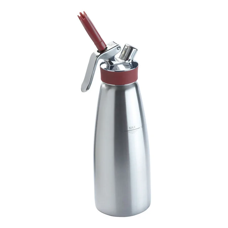 Siphon professionnel pour préparation chaude et froide Corps en acier inoxydable brossé, tête en acier inoxydable avec valve fixée Siphons tout inox, sécurité d\'utilisation , conforme à la norme DF21-901:2013