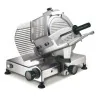 Tranchage par gravité Robuste : écran de protection en acier inoxydable, bâti et chariot en alliage d\'aluminium traité par oxydation anodique Sécuritaire : si le protège lame est démonté, la trancheuse s\'arrête automatiquement. Possède également un interrupteur protégé IP 66