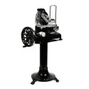 Fabriquée en Italie dans des métaux nobles : acier inoxydable, fonte et aluminium, assemblée à la main Peinture émaillée à haute température ultra résistante Lame concave reproduisant parfaitement le mouvement main/couteau, sans échauffement de la viande Réglage précis de l\'épaisseur de coupe : ajustement au 10ème de mm. Epaisseur de coupe : 0 à 2,5 mm Machine entièrement démontable, rapide et facile à nettoyer Affûteur incorporé Personnalisation possible sur demande (couleur, décorations) Diamètre de la lame: 300mm Capacité de coupe L230mm x H/Diam 190mm Finition noir brillant et plateau aluminium
