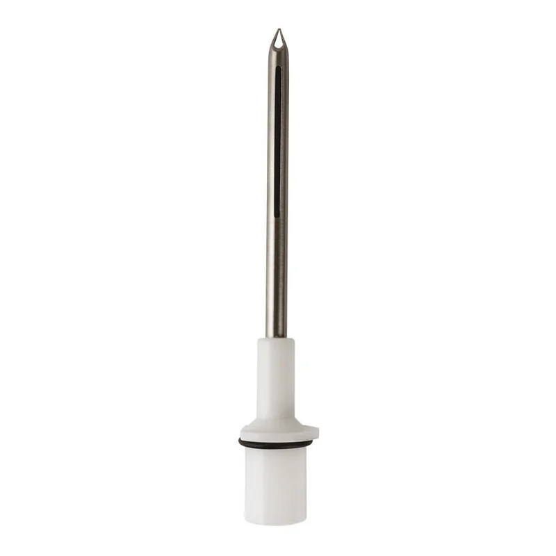 Aiguille à garnir avec une pointe dite "bec de tortue" et fentes latérales, pour trémie 1 sortie Permet de remplir rapidement et facilement vos éclairs, et autres pâtisseries de forme longue