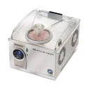 Turbine à glace au processus entièrement automatique Cycles de production et de conservation gérés par le logiciel en fonction de la température extérieure et de la densité de la glace 5 niveaux de conservation en fonction de la consistance souhaitée Conservation juqu\'à 8 heures Cuve fixe + cuve amovible inox 1,7 litres Pale inox avec racloirs amovibles Production horaire : 3,2 Kg / 4,8 litres Temps de turbinage 800G max : 15 min Carrosserie inox, couvercle transparent avec sécurité magnétique à l\'ouverture Nouveau système réfrigérant au gaz R290 qui réduit les émissions de CO² de 99,9% Accessoires livrés avec la machine : 6 racloirs cuve amovible, 6 racloirs cuve fixe, 1 spatule à glace, 1 doseur 25 cc pour saumure