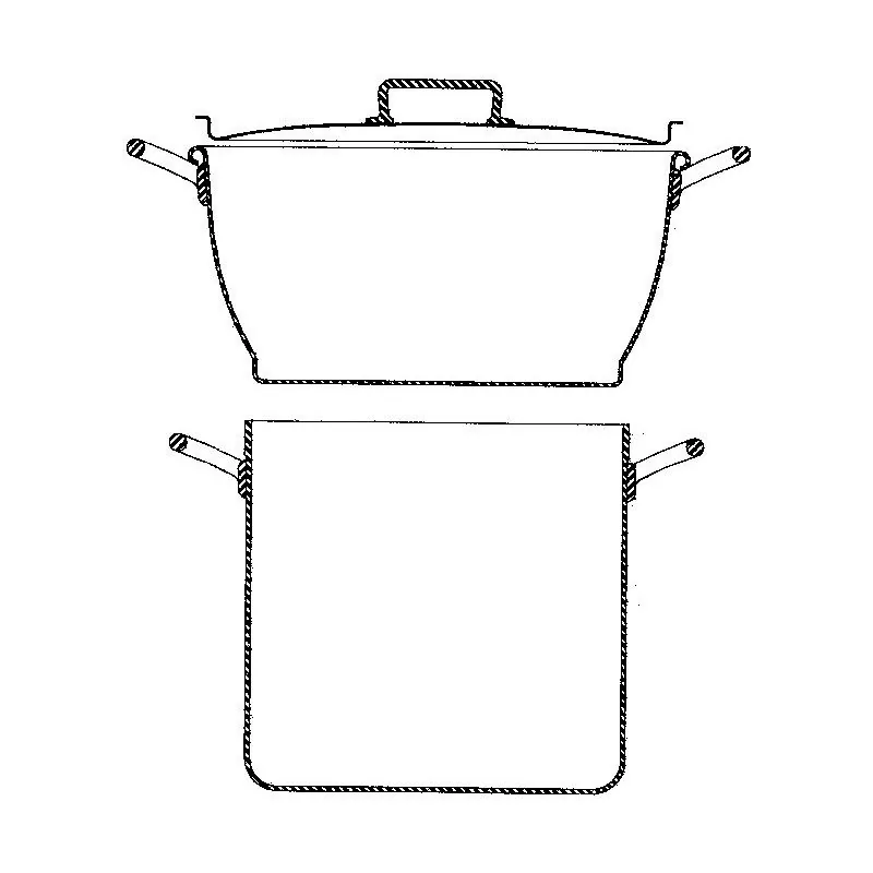 - Dessus : D320 mm, H215 mm, D.base 280 mm, ép. 2 mm, contenance 17.5 L