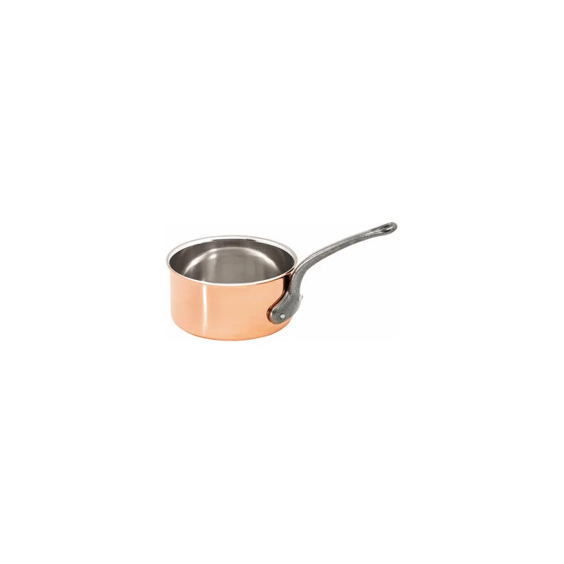 Extérieur en cuivre Intérieur en acier inoxydable (sans étamage), facile d\'entretien Epaisseur de 2.5 mm des corps garantit une conduction remarquable et une grande homogénéité de cuisson Bord « verse-franc » Queue et poignée en fonte, rivetées Le couvercle est vendu séparément