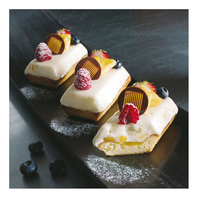 Forme en tricot de verre recouvert de plusieurs couches de silicone Avantages du système Flexipan : souplesse, maintien et anti-adhérence Démoulage facile sans graissage au préalable Compatible avec tous types de fours Cuisson et coloration homogènes 2000 à 3000 cuissons par moule suivant les références Facile à nettoyer (il suffit de le tremper dans l\'eau chaude après utilisation) Format de plaque adapté à la production en série Utilisable en cuisson comme en surgélation de -40° à +260°C