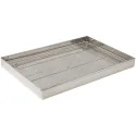 En acier inoxydable Idéal pour napper chocolat, coulis, nappage, sirops, sur les gâteaux ou fruits confits en récupérant le surplus de produit dans la caisse Contient une grille spéciale à petit quadrillage 9x9mm Très résistant, rigide et possède une excellente longévité Facile à nettoyer pour une hygiène irréprochable