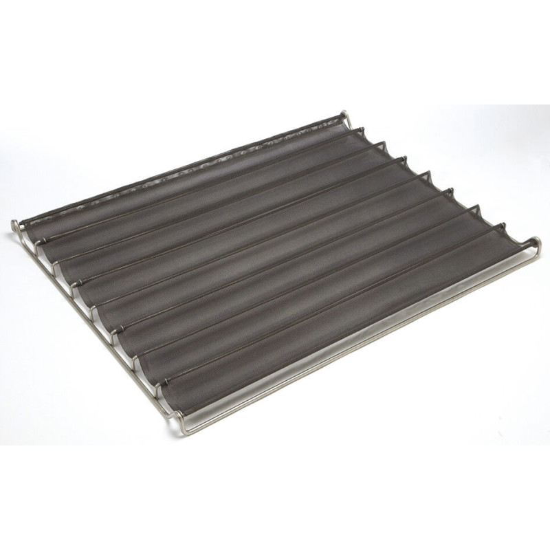 Adapté cuisson pain cru ou surgelé, en four à air pulsé Maille en fibre de verre recouverte de silicone Démoulage aisé grâce à la souplesse de la maille Cadre en fil inox Revêtement silicone