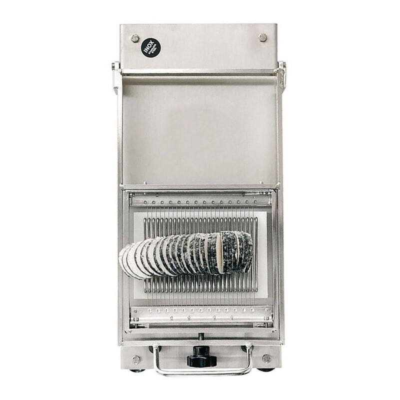 En acier inoxydable et polyéthylène Fils interchangeables en acier inoxydable D.0,4mm Très bonne stabilité assurée par des pieds ventouses pour plus de sécurité Idéal pour la coupe en tranches de tout produit à consistance tendre et homogène Assure une régularité des portions et une découpe rapide Modèle très robuste et d\'une qualité exceptionnelle Doté d\'une grande durabilité et solidité Très facile d\'entretien pour une hygiène irréprochable Le bloc de coupe et support produit passe au lave-vaisselle Régularité des portions : 5mm Découpe rapide : surface coupe 135x122mm