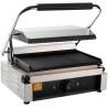 Plaques en fonte, couche d\'email résistante aux rayures et oxydations Châssis en acier inoxydable et poignées thermo-résistantes Spécialement conçu pour la restauration rapide Permet de griller simultanément des 2 côtés les sandwiches ainsi que les viandes Réglage indépendant du thermostat de 50°C à 300 °C Bac amovible de récupération des graisses Entretien simple et nettoyage facile Surface de contact : 340x220 mm