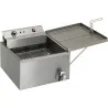 Châssis, couvercle et cuve en acier inoxydable Paniers en inox à fil plats avec poignée amovible et repliable Bac amovible d\'égouttage s\'adaptant à gauche et à droite Equipée de vidange selon normes CE en vigueur Thermostat réglable de +60°C à +190°C Protection contre la surchauffe par disjoncteur thermique Boitier équipé d\'un micro-contact de sécurité empêchant le fonctionnement s\'il n\'est pas en place Entretien simple et nettoyage facile Dimensions du panier sans la poignée : 37,8x35,4 cm