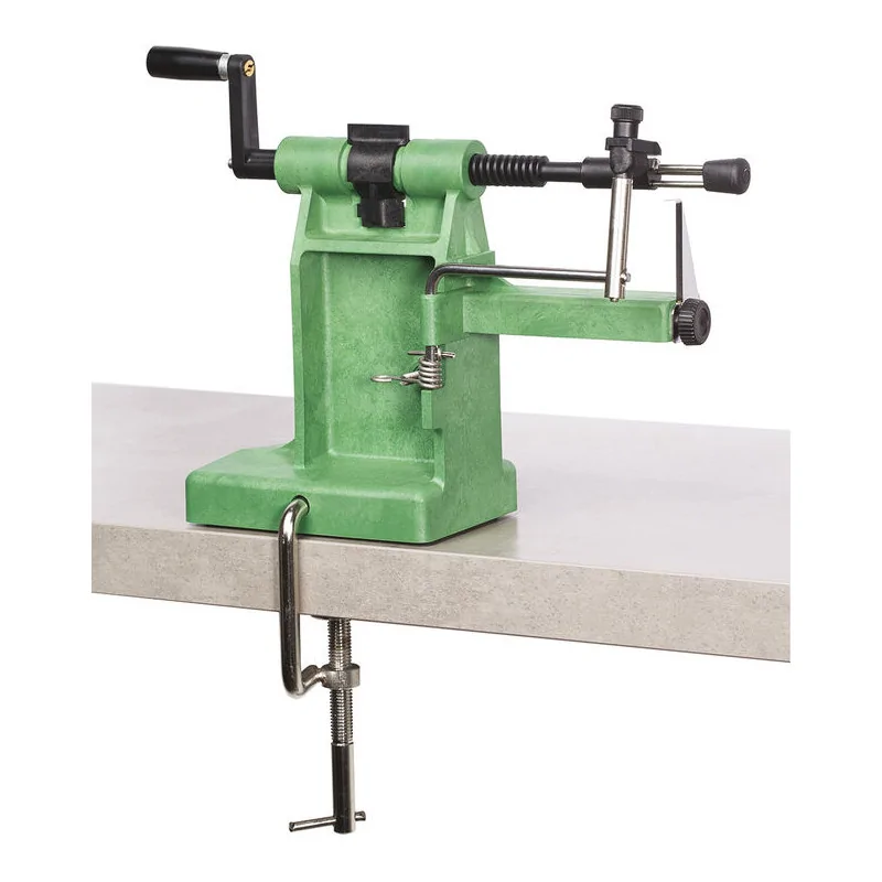 Pèle-pomme réalisé en matériau composite inaltérable Couteaux en acier inoxydable de type coutellerie pour un excellent tranchant Possibilité d\'adapter l\'épaisseur d\'épluchage, le diamètre des trognons et la pression du peleur Livré avec un serre-joint, le pèle-pomme peut également être vissé sur le plan de travail