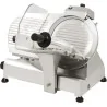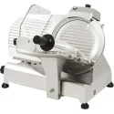 Robuste : Bâti et chariot en alliage d\'aluminium anodisé, couteau en acier inoxydable Lame en acier inoxydable Epaisseur de coupe à réglage précis de 0 à 16 mm Transmission par courroie, silencieuse et évitant les échauffements Non lavable au jet Chariot démontable pour faciliter le nettoyage Diamètre de lame 220 mm Capacité de coupe l 210mm x H 160mm Réglage précis de l\'épaisseur de la tranche jusqu\'à 15 mm