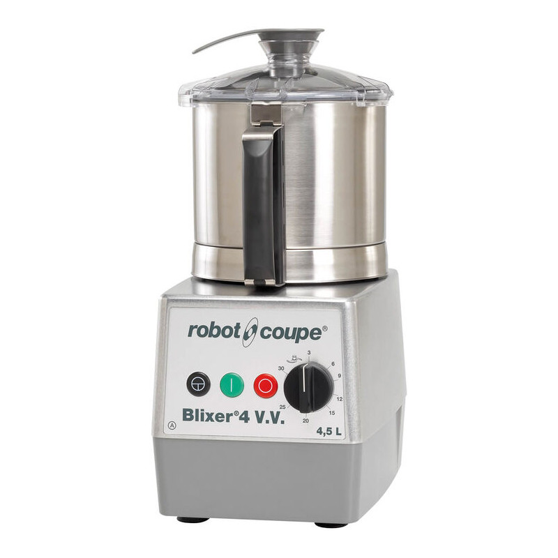 Cuve inox avec poignée ergonomique Préparation de ganaches et intérieurs chocolats Couvercle équipé d\'un racleur et d\'une goulotte d\'introduction pour l\'ajout d\'d\'ingrédients en cours de travail Couvercle avec joint pour une étanchéité parfaite Grâce à son couteau avec lames micro-dentées ,les aliments sont mixés très rapidement Cuve inox 4,5 l Capacité de travail de 0,3 à 2,5 kg/opération Vitesse variable de 300 à 3000 tours/min