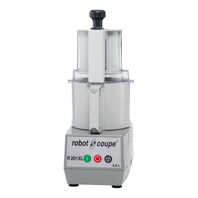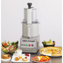 Compact et multi-fonctions pour la restauration commerciale Robot 2 en 1 Fonction cutter : tous types de hachages, farces fines, beurres composés, broyages, pétrissages et broyages de fruits secs en pâtisserie Fonction coupe-légumes : grande variété de coupes de fruits et de légumes pour les quiches, les salades et les sandwichs Fonction coupe-légumes à grande goulotte demi-lune + goulotte cylindrique diamètre 58mm 1 vitesse 1500 tours/min Cuve 2,9 l Livré avec disque éminceur 2 mm, disque râpeur 2 mm et un couteau lisse Doté d\'une grande durabilité et solidité Très facile d\'entretien pour une hygiène irréprochable Ejection des légumes coupés dans la cuve