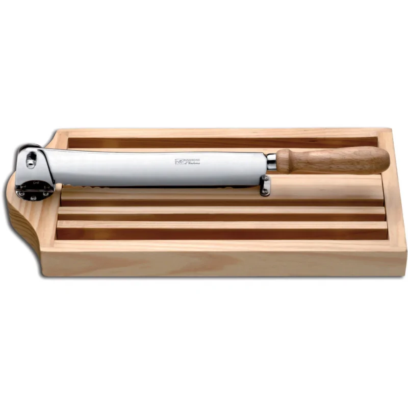 - Planche très fonctionnelle grâce à son couteau intégré et son ramasse miettes