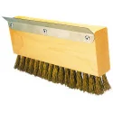 Côté brosse en fils de laiton, côté grattoir en acier inoxydable Pour le récurage des dépôts de carbone et des aliments calcinés Montage Ø 25 mm sur tête bois, très robuste, avec embout vissant métallique