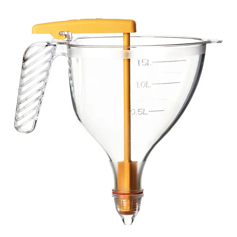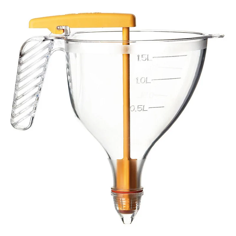 entonnoir gradué à piston copolyester transparent avec support et 4 douilles - 1.5 L