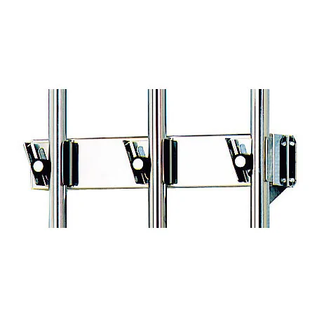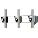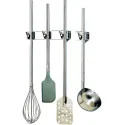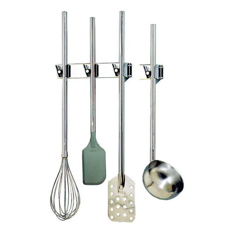 En acier inoxydable Galets en plastique Accrochage et décrochage facile Porte-outils avancé de 60 mm pour éviter contact outils-cloison Admets tous ustensiles à manche rond (de 19 à 3 1 mm de diamètre) Facilité de nettoyage pour une hygiène irréprochable