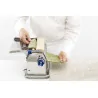 Engrenages en acier, fraisés et trempés Pratique car réglage de l\'épaisseur de l\'abaisse par bouton chiffré (10 épaisseurs possibles) Attache brevetée assurant une fixation parfaite à la table de travail Largeur cylindre du laminoir: 220mm Epaisseur maxi des abaisses de pâte: 10mm Livrée sans cylindre Débit horaire 12kg environ Idéal pour les restaurants et collectivités Régulation électronique de vitesse Modèle plus silencieux et transmission épicycloïdale Engrenages blancs en téflon Bâti en acier chromé Trémie en acier inoxydable Sécurité : arrêt automatique du pétrisseur dès l\'ouverture du couvercle