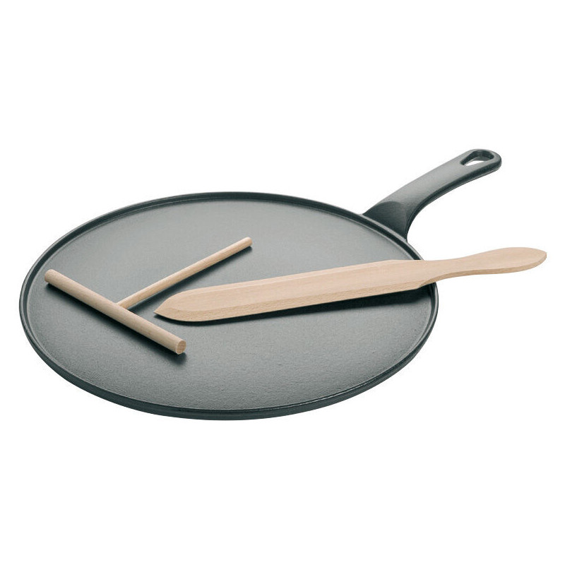 Fond émaillé qui ne raye pas les plaques de cuisson ni les tables Diffusion uniforme de la chaleur pour une cuisson homogène Cuisson dans la fonte qui conserve les qualités nutritionnelles des aliments Revêtement intérieur prolongeant la durée de vie du produit Idéal pour la cuisine spectacle type Scrambles ou Food court Livrée avec spatule et râteau en hêtre