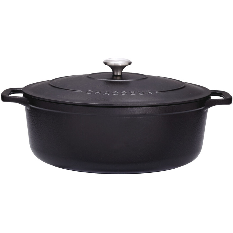 Le Chasseur cocotte ovale avec couvercle noire 31 x 26 cm